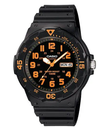 The CASIO MRW-200H-4BVDF Men Watch is a stylish and functional timepiece. It features a rotary bezel, day and date display, and a fashionable diver design. It is also water resistant up to 100 meters, making it perfect for water activities.