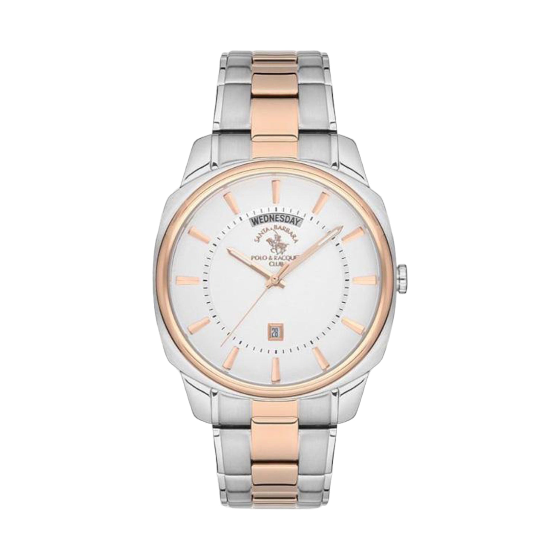 The SANTA BARBARA POLO SB.1.10160.5 MEN WATCH is a stylish and sophisticated timepiece. It features a stainless steel case and strap, giving it a classic look. The watch has a quartz movement. The dial is white with rose gold hands and markers, making it easy to read.This watch is perfect for any occasion, whether it's a formal event or a casual outing.