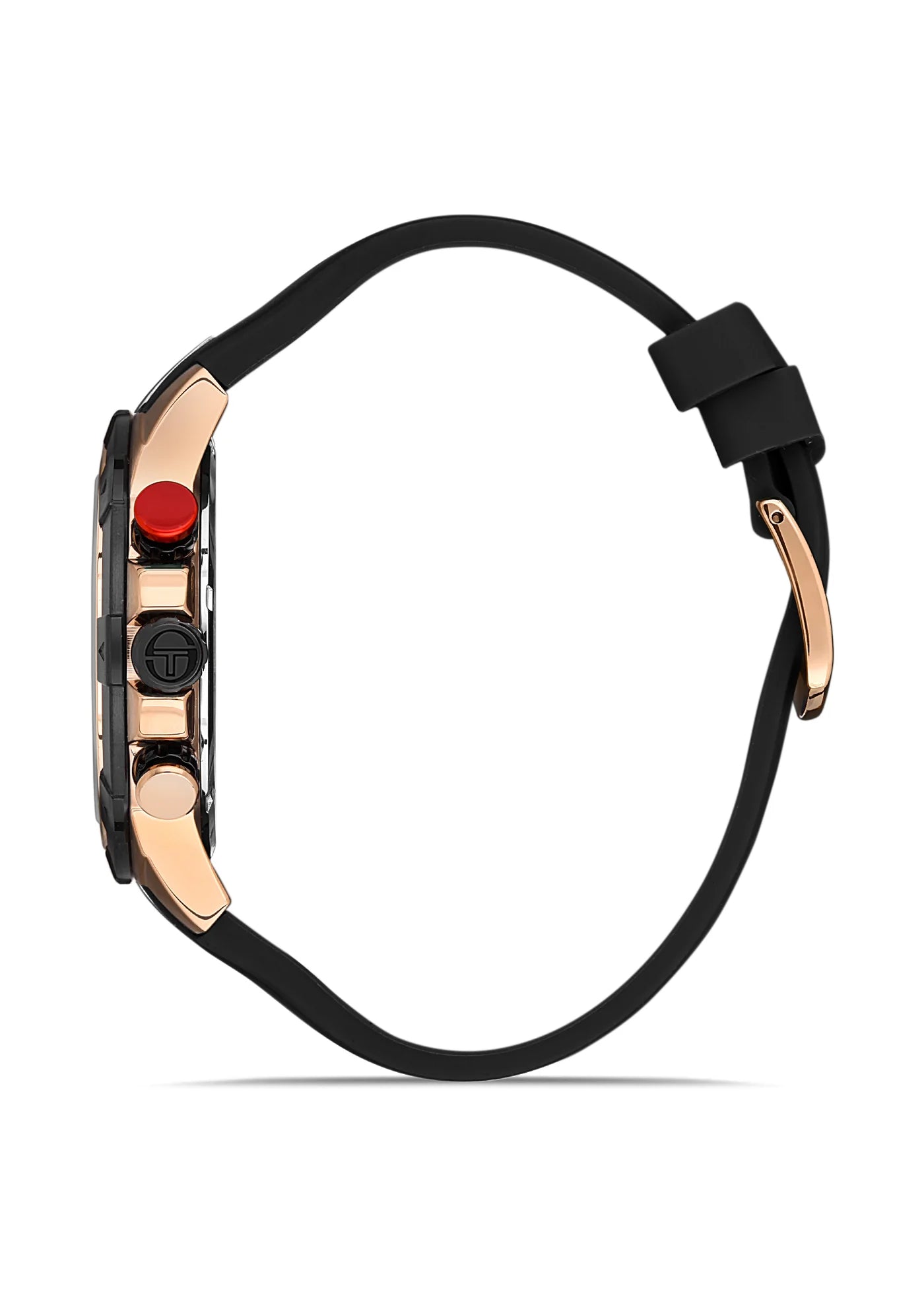 Upgrade your accessory collection with this analog watch from the house of Sergio tacchini. The Black dial and Black Rubber Band of this watch for Men offer high quality as well as lightweight feel. Designed to perfection, this watch will go well with formals and casuals too.